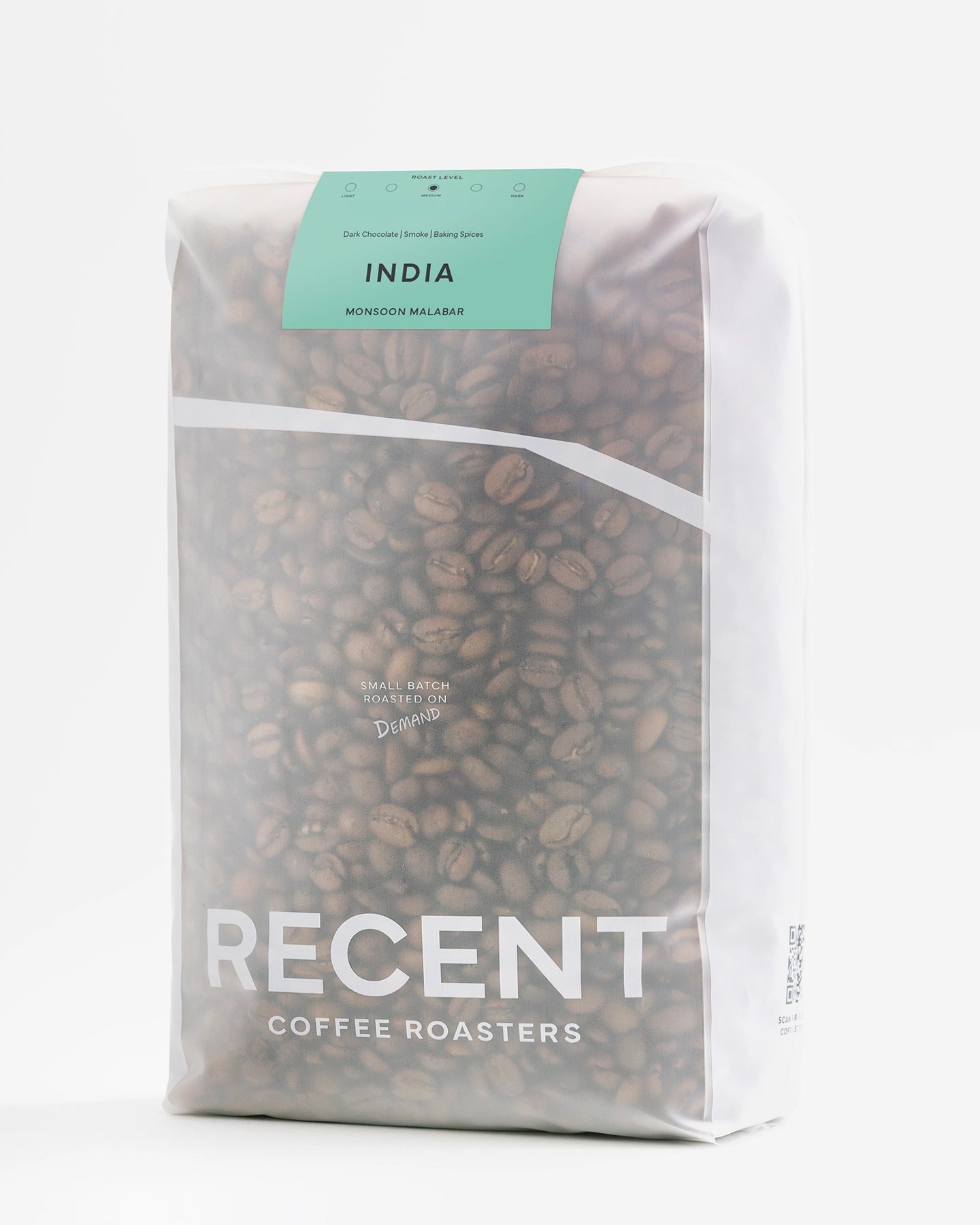 This lot of Monsoon Malabar captures one of coffee’s most distinctive post-harvest processes. Grown on India’s southwest coast, along the Malabar seaboard, the beans are exposed to the seasonal monsoon winds in open-sided warehouses for several weeks. During this time, they swell in size, shed acidity, and develop a rich, mellow character with a deep, velvety body. The result is unmistakable: a cup that favours texture and depth over brightness — earthy, smooth, and entirely its own.