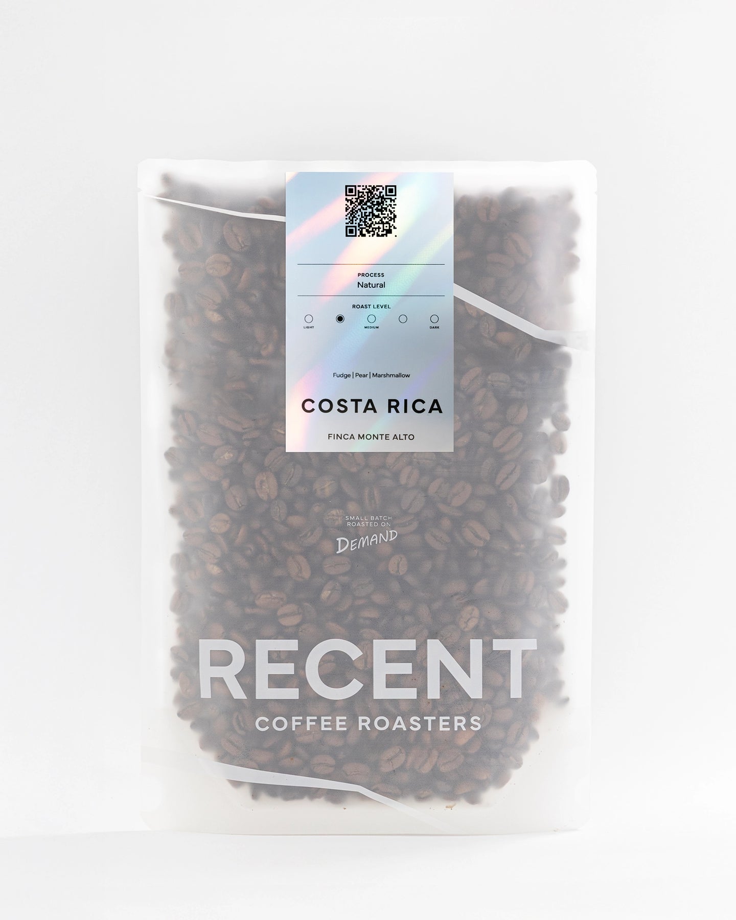 A layered cup showing fudge-like sweetness with caramel and butterscotch depth, lifted by a bright, pear-like acidity that gives structure and vibrancy. A soft marshmallow sweetness rounds the finish, lending a creamy, balanced texture. The lighter roast highlights the coffee’s clarity and precision – sweet, articulate, and immaculately clean, a modern interpretation of Tarrazú’s natural profile.