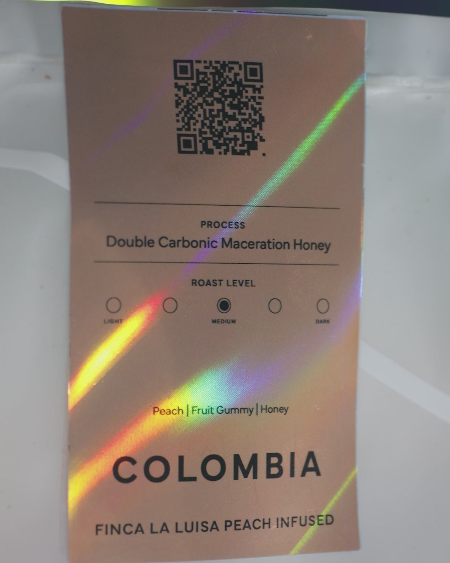 The result is an extraordinary cup: bursting with ripe peach flavour, candy-like sweetness, and a silky honey finish. Balanced yet adventurous, this coffee pushes boundaries while celebrating Colombia’s rich coffee heritage